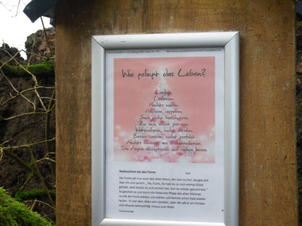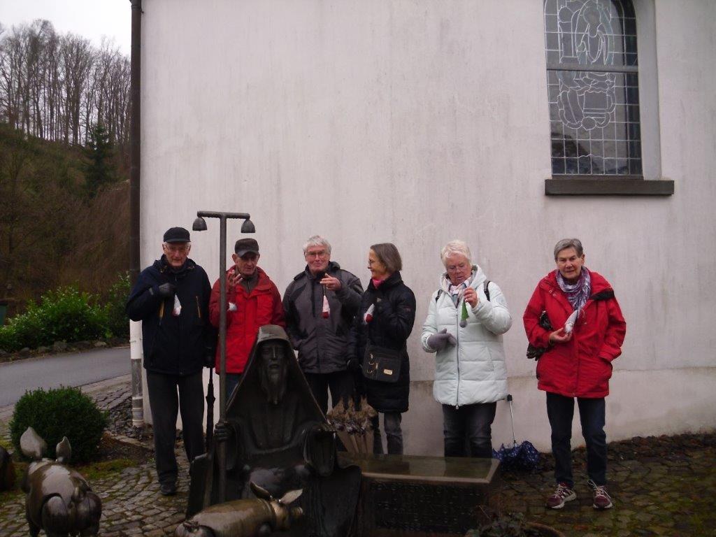 Wir haben uns mit 7 Personen am Schwimmbad in Meschede getroffen und sind in Fahrgemeinschaft nach Arpe gefahren. In Arpe angekommen, sind wir den Adventsweg gewandert. Der Weg ist von der Frauengemeinschaft Arpe wunderschön hergerichtet. An vielen stellen im Wald sind Schilder mit guten Sprüchen aufgestellt. Kurz vor dem Ende des Weges konnte man sich einen Wichtel mitnehmen. In Arpe am Friedhof wird einem erklärt, woher der Flurname Vossel kommt. Zum Abschluss hat uns der Kaffee und Kuchen gut geschmeckt.